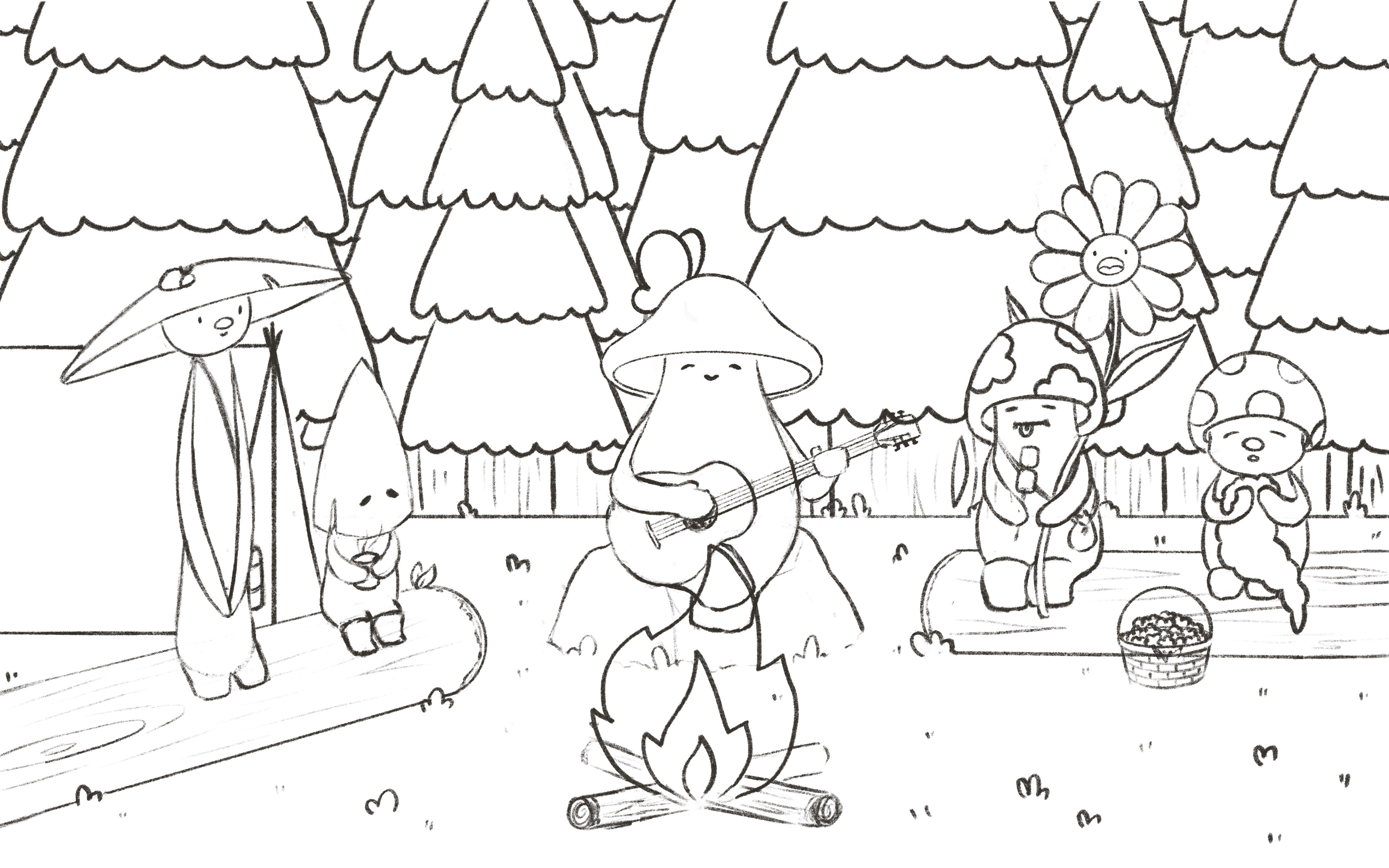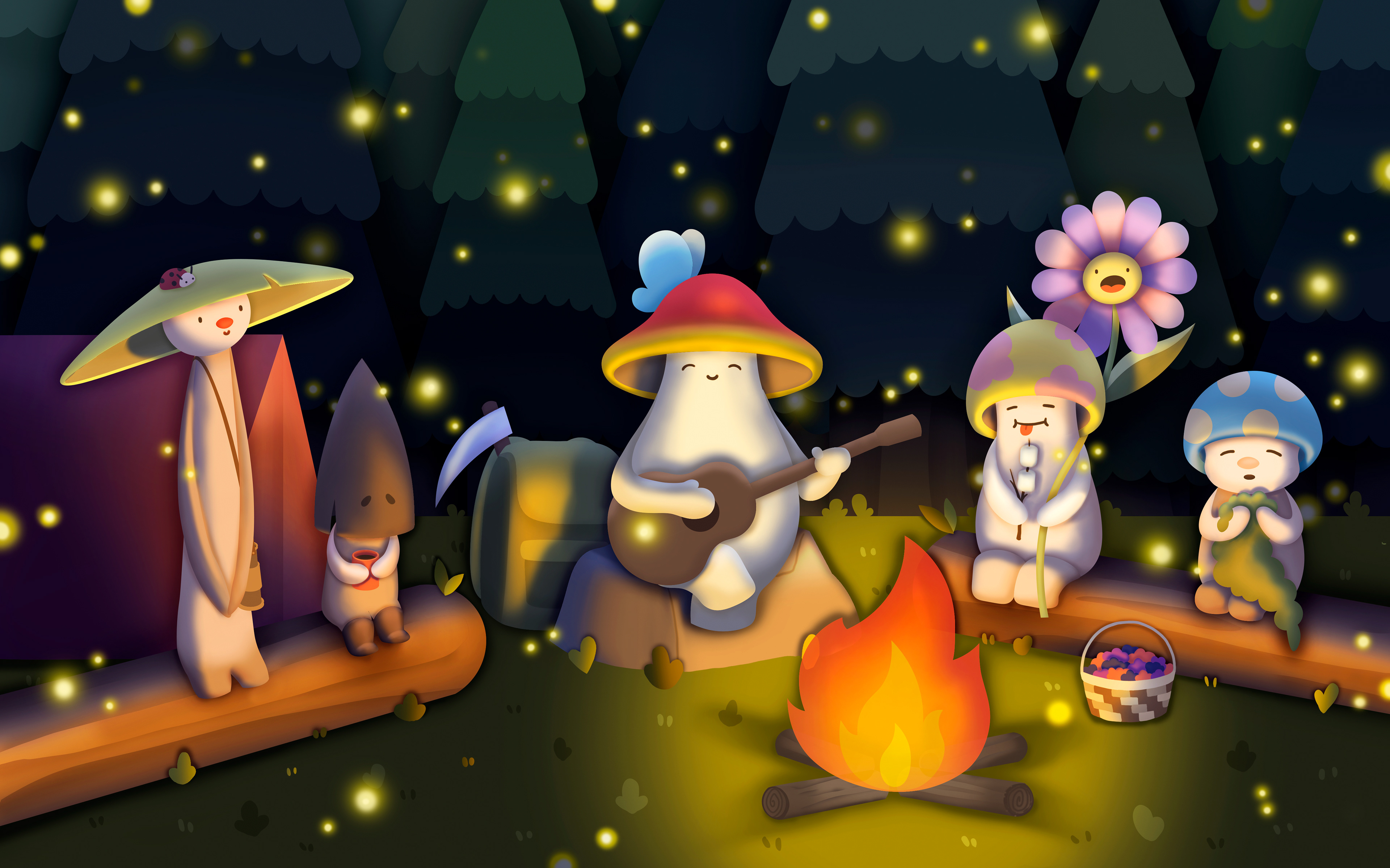 Jamur Jerry & Friends went out camping together, gathering around the campfire.
