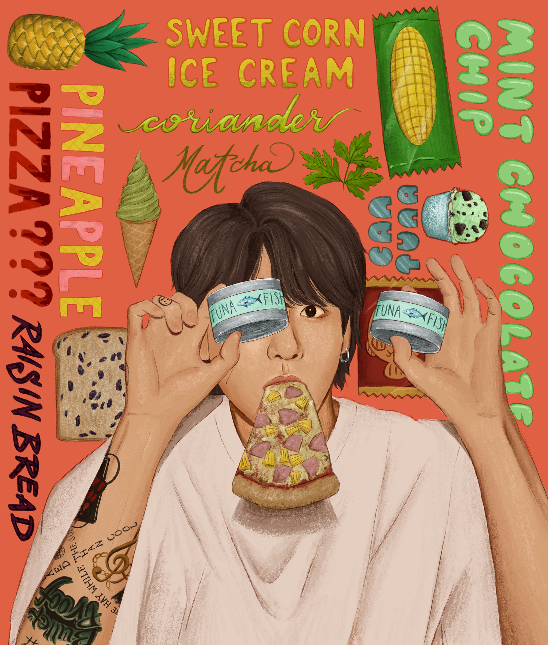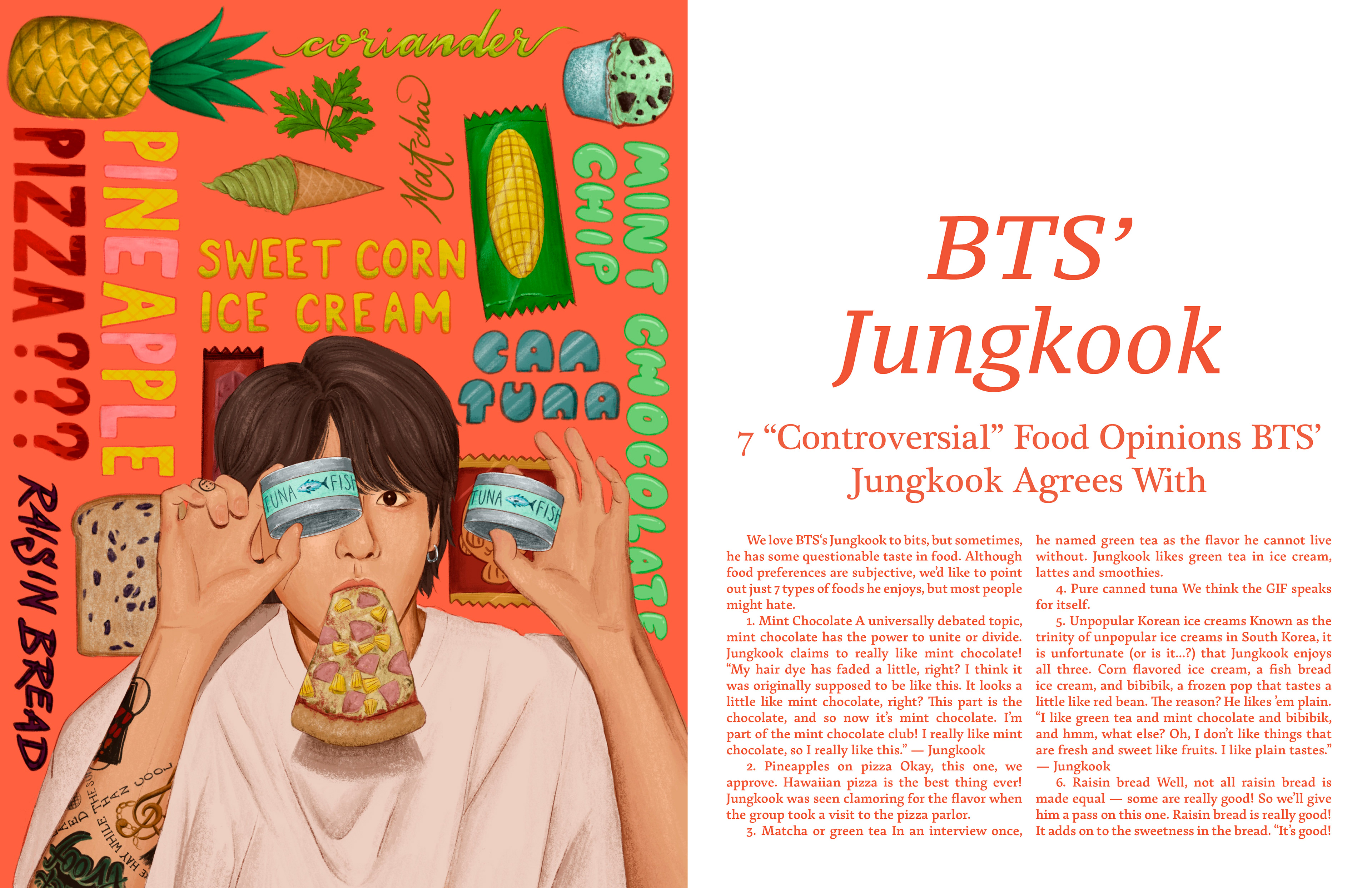 Mock illustration for the article: 7 "Controversial" Food Opinions that BTS' Jungkook Agrees With. Original article by Koreaboo.